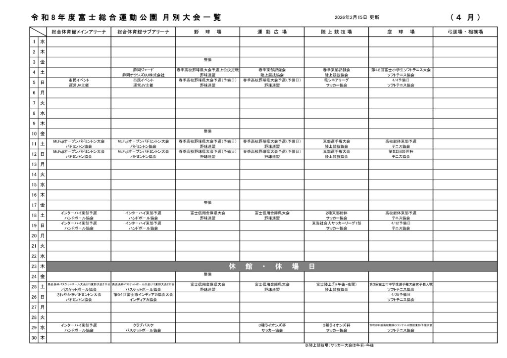 | バスでお越しの場合 | 富士総合運動公園バス停下車すぐ、 三ツ倉バス停下車10分(富士急静岡バス) |