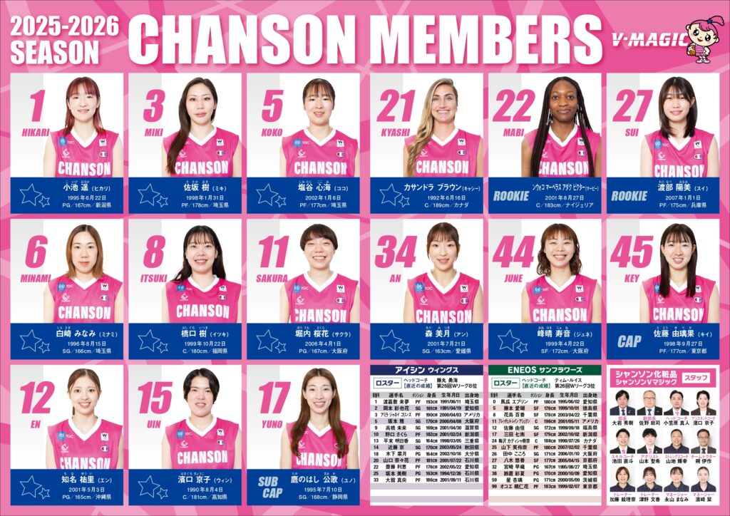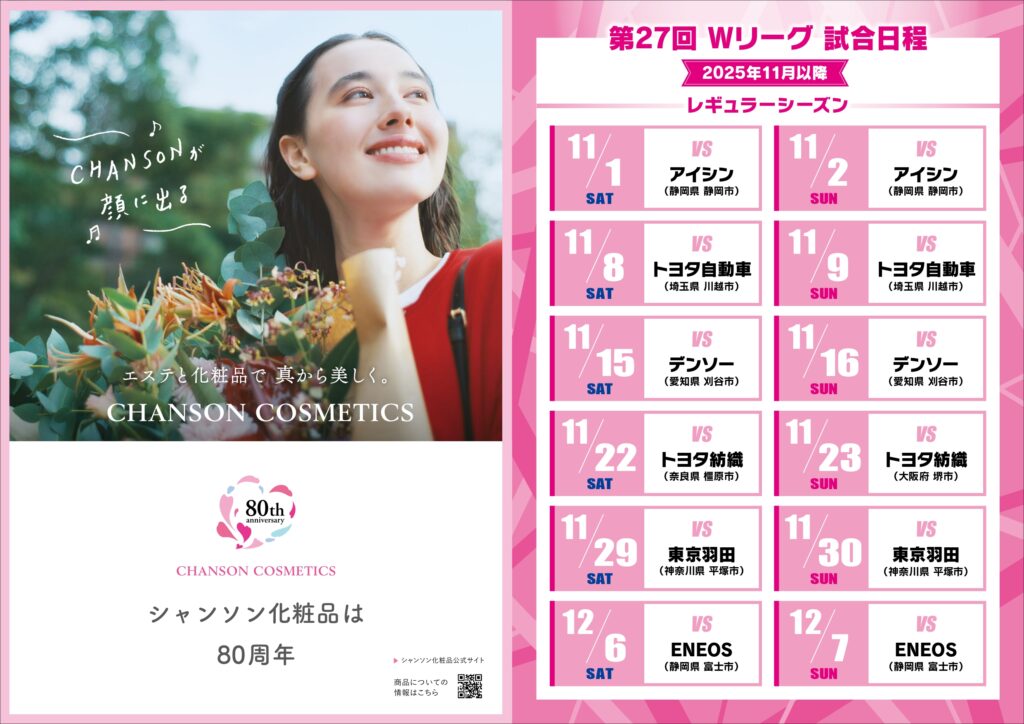 12月6日、7日 大樹生命 Wリーグ2025-26レギュラーシーズン 第8週 シャンソンVマジックvsENEOSサンフラワーズ
