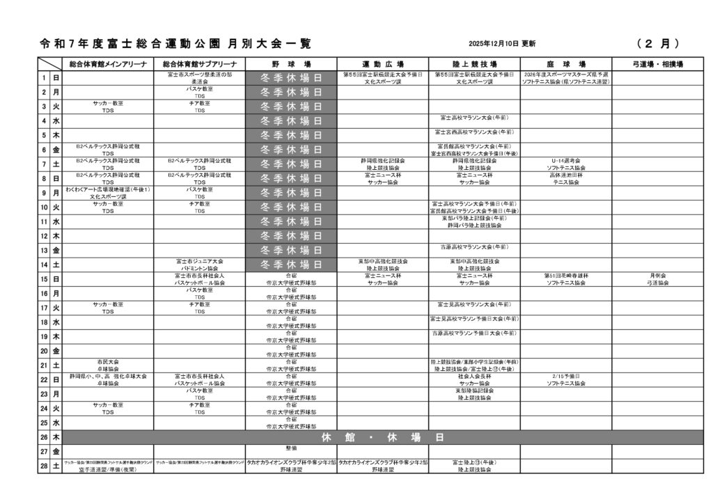 毎月第4木曜日(2月26日)は休館・休場日となります。